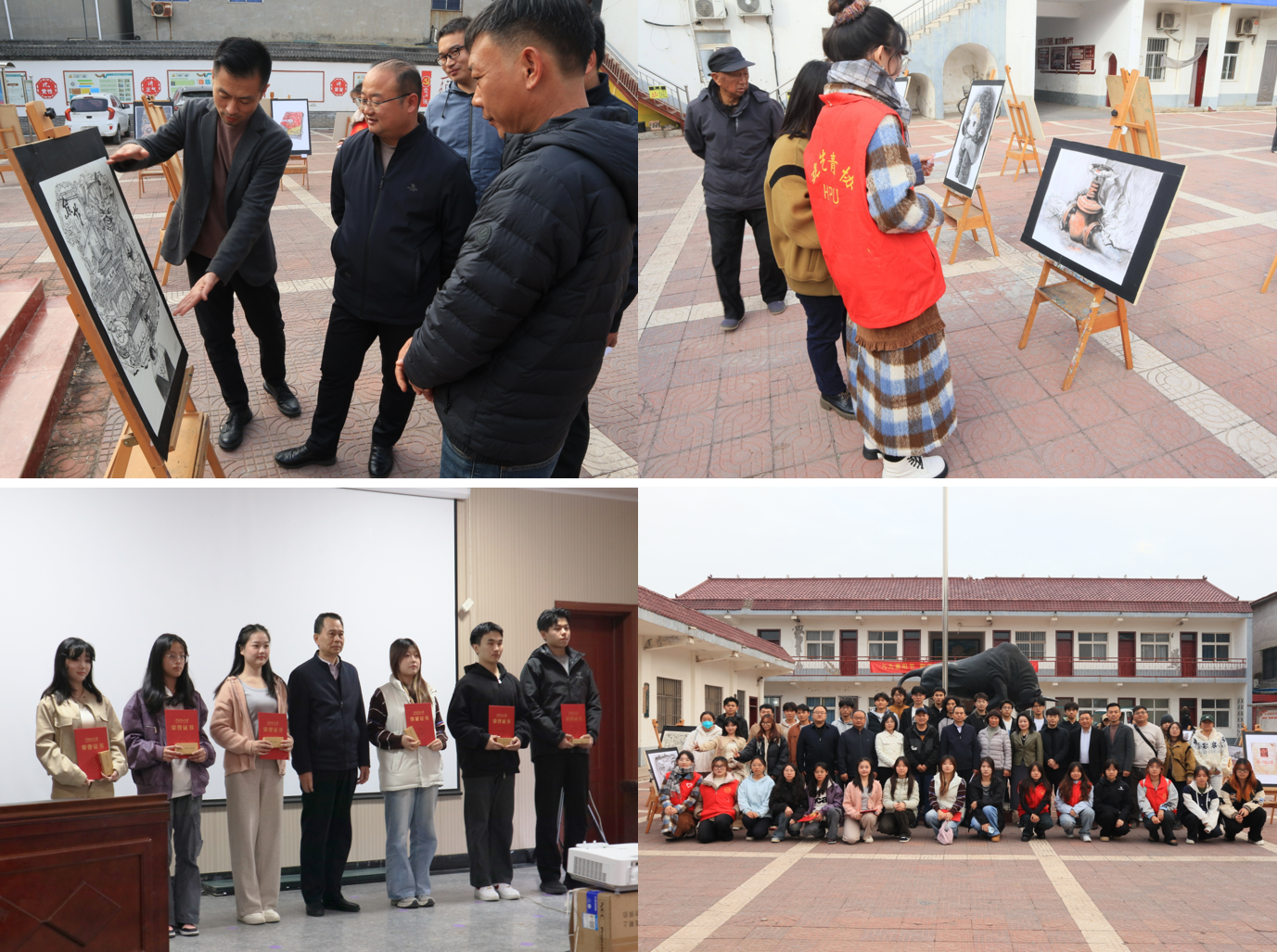 11月10日,建艺学院“北朱村公共空间改造设计成果汇报暨优秀素描作品展”在焦作市中站区北朱村顺利举办,朱村街道办事处书记楚尚运、中站区文物局局长郭胜军、北朱村党委书记张小爱等地方领导,与我校教务处、建艺学院相关负责人,以及师生代表共同参加本次活动。