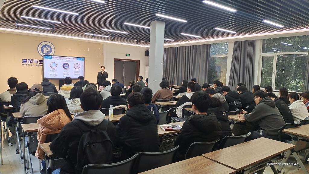 为贯彻落实党中央、国务院及省委省政府关于高校毕业生就业工作的决策部署,加强学校职业发展教育和就业指导,增强大学生生涯规划意识,促进毕业生高质量充分就业,11月28日下午,学院在晓书楼大会议室举办2023年“筑梦青春志在四方,规划启航职引未来”大学生职业规划大赛。院党委副书记张明、城市规划专业支部书记张运兴、视觉传达专业系主任王海、环境设计专业系主任王维天、工业设计专业系主任周敏作为评委老师出席了本次大赛。