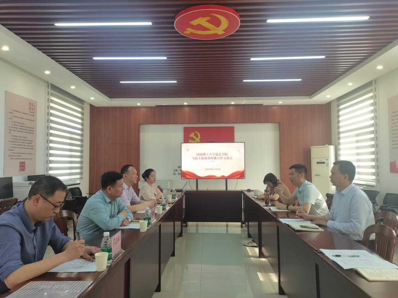首先,张建新对张乾林一行的到来表示热烈欢迎,希望校地双方紧密对接、拓展合作,在社会实践、志愿服务、党团活动等方面为学生提供平台,为学生全面发展提供有力支持。王同文介绍了建艺学院在师资水平、专业设置、学术研究等方面的基本情况,并表示学院将结合学院专业特色,进一步加强教研工作,充分发挥学科优势,精准对接解放区实际,不断提高教育质量,使学院各专业人才满足社会的需求。随后,张乾林介绍了解放区民主街道办事处的基本情况,并表示欢迎学院师生参与政府发展战略的实施,将为大学生融入社会提供平台,希望他们在提高专业知识的同时,为地方发展提供智力支持,为奉献社会打下坚实基础。师建平表示,希望持续深入推进校地合作,在工作创新、科技转化、政策支持等方面多做交流,实现互利共赢发展,并介绍了解放区民主街道办事处发展前景,表达了对学院师生参与的期待。