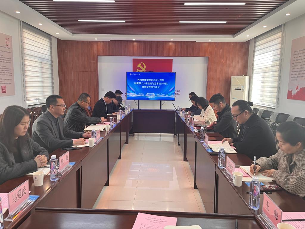 3月20日上午,河南城建学院艺术设计学院院长郭汝、党委副书记党伟、副院长汤喜辉、平顶山市设计创新综合应用研究中心主任黄伟、平顶山市城乡更新设计与虚拟仿真重点实验室副主任马爱民等一行7人莅临学院参观交流。双方围绕学院高质量发展展开研讨。院长王同文、副院长何艳冰,以及相关系室负责人参加此次研讨,会议由副院长韩宏斌主持。