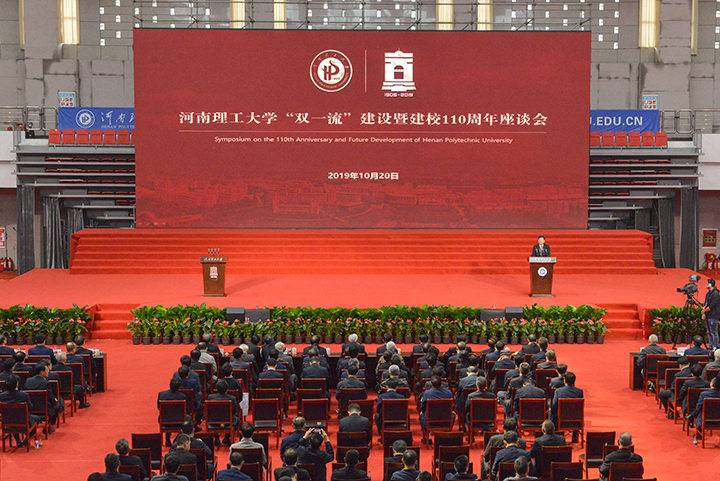10月20日上午,学校“双一流”建设暨建校110周年座谈会在南校区体育馆召开。河南省委常委、宣传部部长、省委高校工委书记江凌,第十届、十一届全国政协人口资源环境委员会副主任、浙江省政协原主席、党组书记李金明,国家能源投资集团有限责任公司党组书记、董事长王祥喜,河南省人大常委会副主任徐济超,河南省副省长刘伟,河南省政协副主席、中国工程院院士、郑州大学校长刘炯天,第十一届全国人大农业与农村委员会委员、河南省委原常委、常务副省长王明义,第十一届全国政协常委、全国政协提案委员会副主任、中国煤炭工业协会名誉会长、原国家安全生产监督管理总局副局长、党组副书记王显政,中国安全生产协会会长、原国家安全生产监督管理总局副局长、国家煤矿安全监察局局长赵铁锤,国家减灾委员会专家委员会副主任、国务院应急管理专家组组长、原国家安全生产监督管理局副局长、学校应急管理学院名誉院长闪淳昌,原煤炭工业部总工程师尚海涛,河南省原省长助理卢大伟;中国工程院院士刘先林、王家耀、张铁岗、彭苏萍,中国科学院院士郭柏灵、何满潮、张清杰,美国国家工程院院士彭赐灯、德瑞克,俄罗斯自然科学院院士牛济泰,俄罗斯工程院院士葛世荣;河南省教育厅党组书记、厅长郑邦山,焦作市委书记、市人大常委会主任王小平,焦作市委副书记、市长、党组书记徐衣显等领导和嘉宾出席大会。刘伟宣读了省委、省政府贺信。会议由校党委书记邹友峰主持。