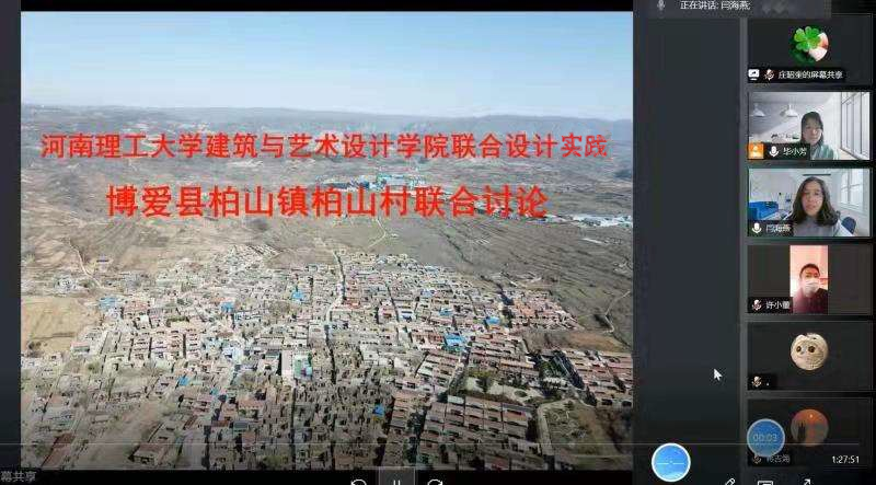 4月1日下午,我院举办柏山村联合设计讨论会。会议邀请到建艺学院教学院长闫海燕,柏山村村民委员会主任刘忠瑞、总支部副书记球文平、村民委员会委员刘新凯等,同时还有建筑学、城乡规划、风景园林、工业设计、视觉传达、环境设计、旅游管理等40余名专业师生参会。受疫情影响,本次讨论会在线上举办。