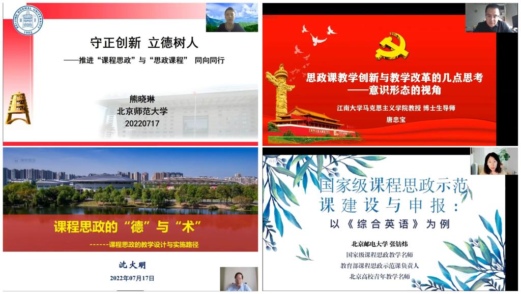 此次线上培训主要聚焦课程思政教学设计、考核评价方法与实施路径。北京师范大学马克思主义学院教授熊晓琳、江南大学马克思主义学院教授唐忠宝、西南交通大学教授沈火明、北京邮电大学副教授张钫炜等四位首批课程思政示范课程、名师代表、高校课程思政优秀教师从理论和实践两个方面入手,多维度解读课程思政,带来了不同类型课程的教学设计方法和案例,分享了不同学校践行课程思政的路径和方法,为我院教师呈现了一场课程思政的饕餮盛宴。