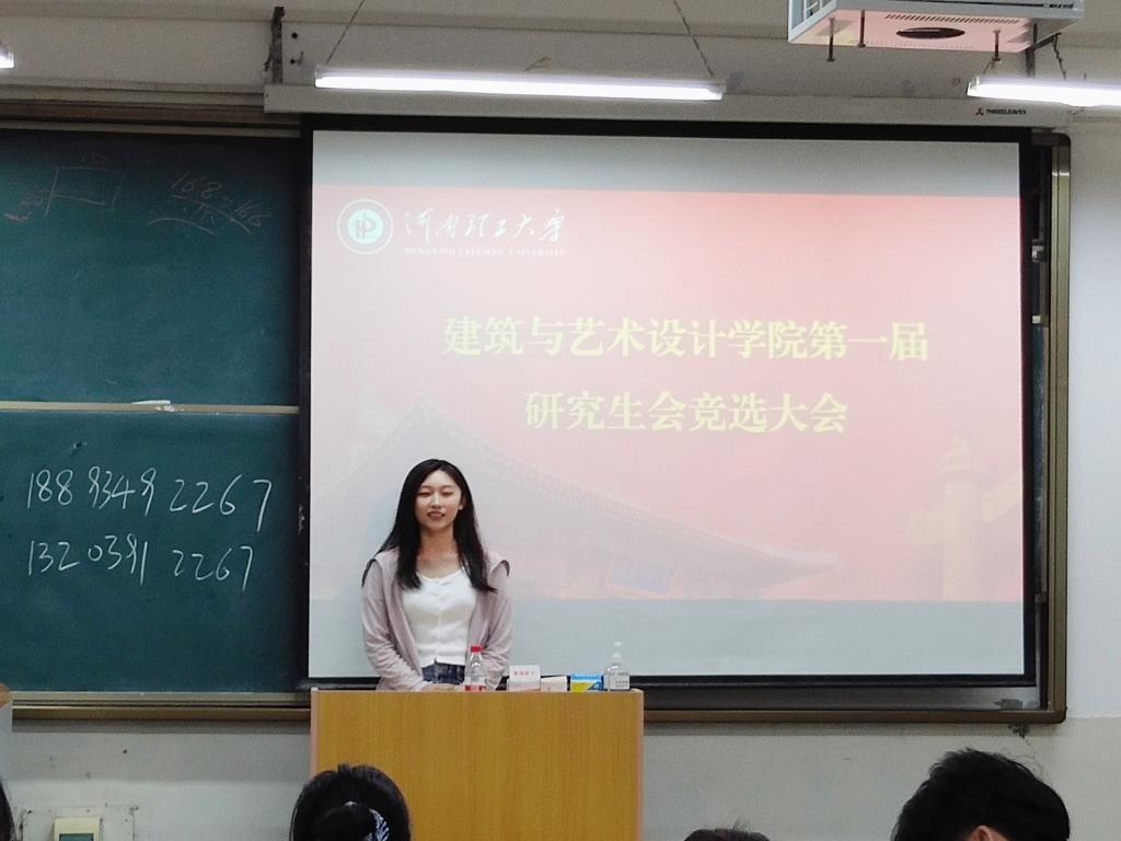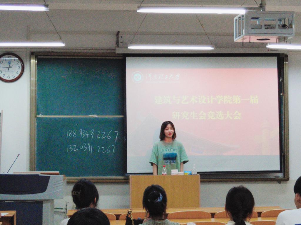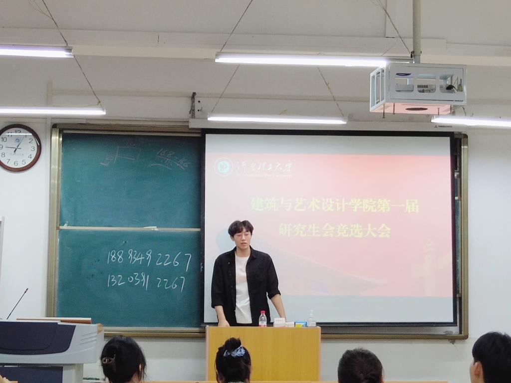 为进一步加强研究生骨干队伍建设,健全与完善研究生会组织体系,促进我院研究生的综合素质,提高责任与服务意识。经研究决定成立建筑与艺术设计学院首届研究生学生会。我院于9月29日成功举办首届研究生学生会竞选大会,本次会议由研究生辅导员袁凯老师主持。