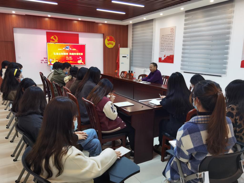 11月22日下午,院党委书记杨富卿在学院中层会议室为学生开展两场“弘扬法治精神,构建和谐校园”法治宣传教育讲座。视觉传达2020级同学参加了学习。