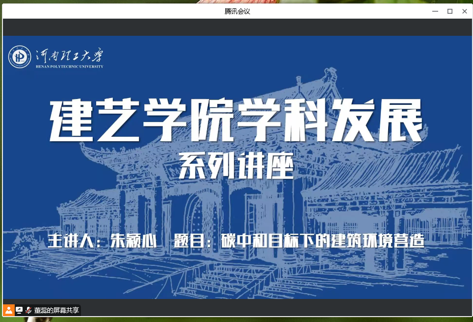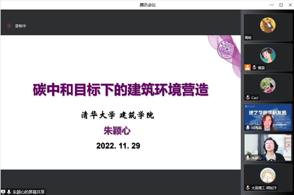 为进一步推进学科发展、提升教师科研能力,11月29日下午,清华大学建筑学院朱颖心教授应我校建筑与艺术设计学院邀请,通过腾讯会议为学校师生作了题为《碳中和目标下的建筑环境营造》的学术报告。200余名师生聆听了本次报告并积极参与讨论,报告会由该院副院长闫海燕主持。