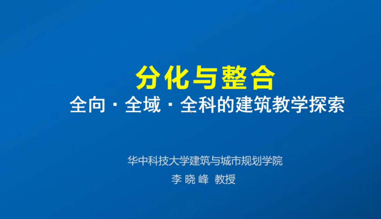 为进一步落实学院立德树人职责,提升教师教学科研水平,1月9日上午华中科技大学建筑与城市规划学院副院长李晓峰教授应学院邀请,通过腾讯会议作了题为《分化与整合:全向-全域-全科的建筑教学探索》的学术报告,全体教师聆听了本次报告并积极参与讨论。