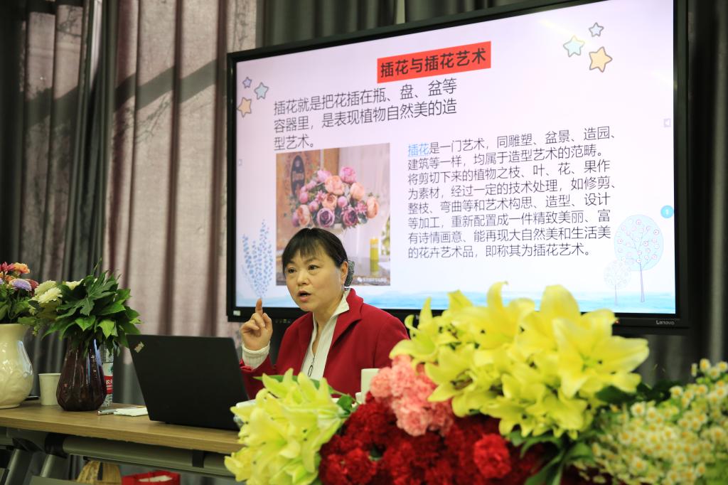 为提升广大女教工综合素养,丰富女教工课余精神文化生活,展示其健康向上、积极乐观的良好精神风貌。3月8日上午10:00,我院于大会议室开展“邂逅春天.拥抱自然”庆“三八”主题插花活动。本次活动邀请到河南省首席科普专家郭军霞进行现场授课。
