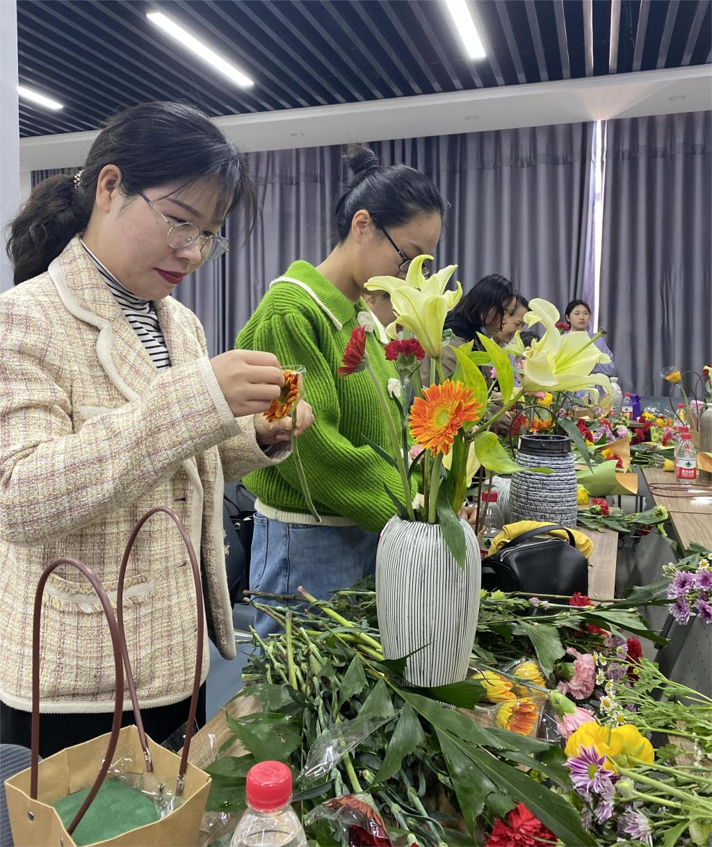 在本次插花活动中,大家互通互融,互帮互助,互学互比,互勉互补,拉近了情感,密切了友谊,营造出心心相连、人合心合的良好氛围,不仅让广大女教工在繁忙的工作生活之余,度过了一个温馨浪漫有意义的节日,增加了女职工的幸福感,更激发了广大女教工在新时代展现新担当的积极性和创造性。