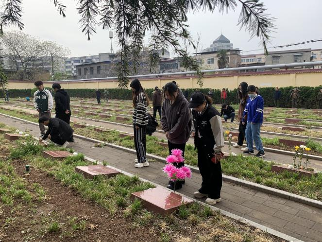 4月5日上午8:00,建艺学院第二学生党支部、学生会、青年志愿者协会、青马工程培训班全体成员于焦作市烈士陵园举行以“缅怀英雄先烈 弘扬革命精神”为主题的清明扫墓活动。在庄严肃穆的革命烈士英名录前,全体成员向革命先烈肃立默哀,悼念英灵,献花以寄托哀思。献花结束后,同学们自主参观烈士陵园,站在墓碑前,每一位同学心中都感慨万千,仿佛已置身于那硝烟弥漫的战场上、惊心动魄的战斗中,深刻感受到了革命先烈的英雄壮举和视死如归的革命精神,共同经历了一次心灵洗礼,激荡起对英雄的无限崇敬和对祖国的无限热爱之情。“桃花红雨英雄血,碧海丹霞志士心。”革命烈士正气凛然、舍身为国的英雄气概永垂不朽,深深震撼着每一位同学的心。