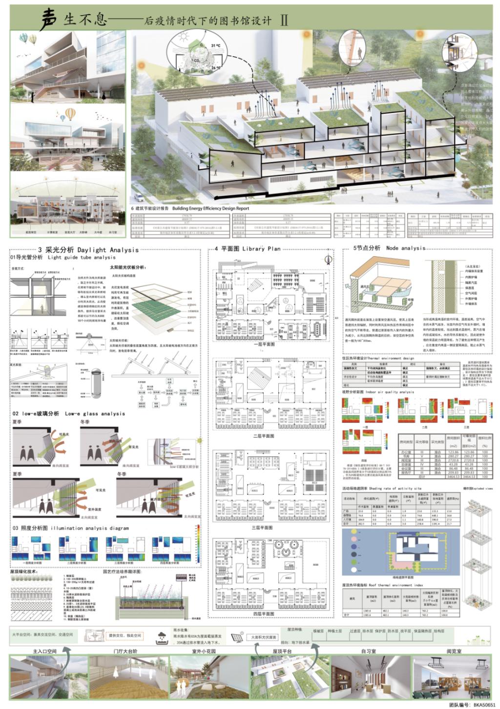 声生不息(三等奖):本设计以后疫情时代为背景,遵循学生为本、服务至上的原则进行设计,高效实施阅读共享空间优化及精准性再造,满足校园师生多元文化的实际需求,从多层次、多维度进行空间再造,为学生创设良好的阅读和学习氛围。空间形式不再拘泥于传统图书馆所谓藏阅一体的形态,而是为学生提供更加丰富的研讨交流空间,为各种规模的多人学习提供交互空间,增添学生们讨论、交流、协作的场地,为师生提供多元化、健康的学习空间是本次设计的主要目的。