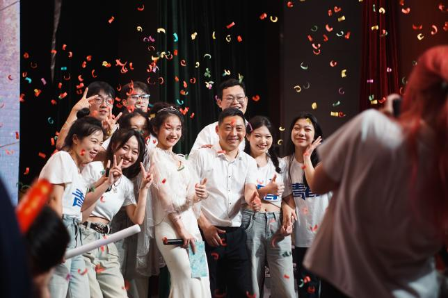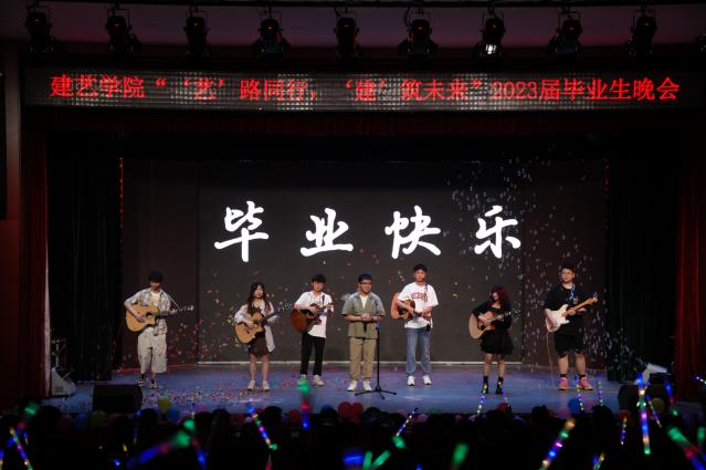 毕业晚会在热烈的开场舞中拉开序幕,调动了全场的气氛。接下来一首《平凡之路》吉他弹唱,唱出了无数学子曾经一起奋斗的模样。两位同学演绎的相声《这般童话故事》,恰如大学生活一般诙谐而浪漫,给大家带来了喜悦与欢笑。由女生们带来的《Barbie Girls》多巴胺走秀,每一个人缤纷而不同,正是如今新青年们最好的写照。《毕业生舞蹈》舞动着蓬勃青春,再次点燃了晚会的氛围。《one last time》合唱,歌声曼妙悠扬,赢得了全场的热烈掌声。接下来,为老师与同学们准备的“时光留影,逐梦前行”中场环节,又拉近了彼此的距离,回首大学青春,离不开老师们春风化雨般的教导,一篇由3位老师和11名推免研究生的《一路有你》朗诵,勾起了老师与同学们无数的美好回忆。同学们有太多说不完的话,但终将面对太多未来的挑战,但是大家终究要满怀斗志,怀着目标继续进发。最终,在《入海》的歌声中,本场晚会落下帷幕,全体师生合影留念。
