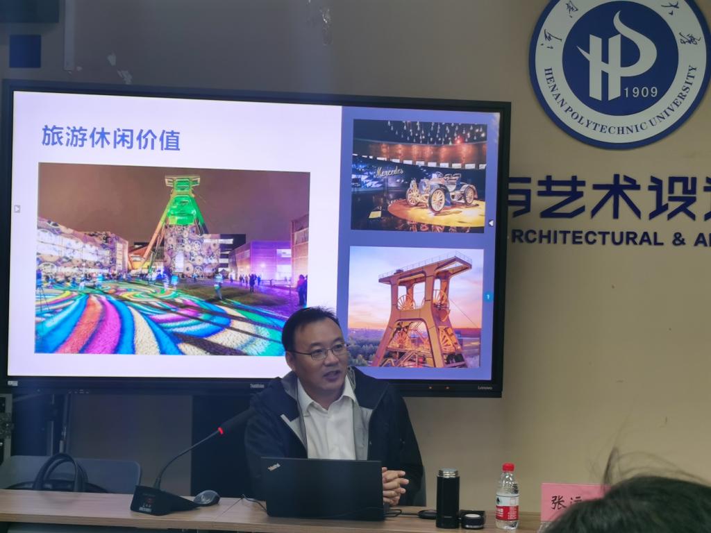10月24日下午,在建艺学院大会议室,我院城规系张运兴博士应邀作题为《从“锈”到“秀”——工业遗产保护与更新》专题讲座。本次讲座学院部分教师和研究生参加,设计学重点学科带头人金弘大老师主持。