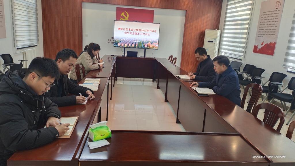 11月28日,我院在党建会议室召开2023年下半年学生安全稳定工作会议,学院党委书记张建新以及全体专兼职辅导员参加了会议,会议由院党委副书记张明主持。