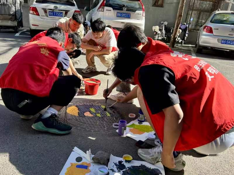为加强社区文化建设,同时培养党支部成员的服务意识,积极鼓励党员同志们参与到文化建设中去。2024年4月23日下午15:00,建艺学院本科生第三学生党支部于民权街社区开展了一场别开生面的井盖涂鸦志愿服务活动。