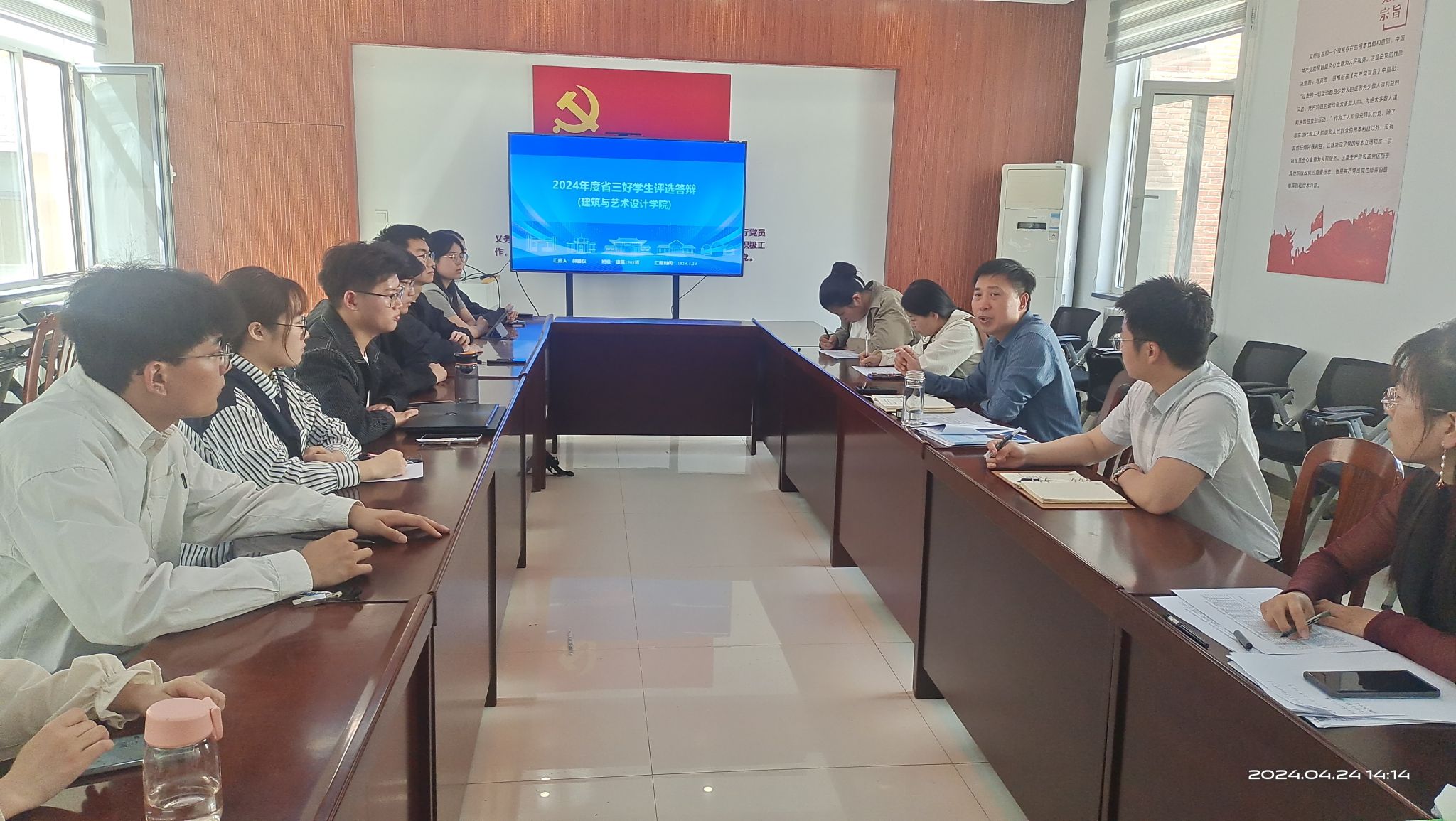 4月24日中午,我院在学院党建会议室开展2024年河南省三好学生、优秀学生干部、先进班集体评选活动。院党委副书记张明、学院全体专兼职辅导员、参加答辩的候选同学参加了活动,活动由金欢老师主持。