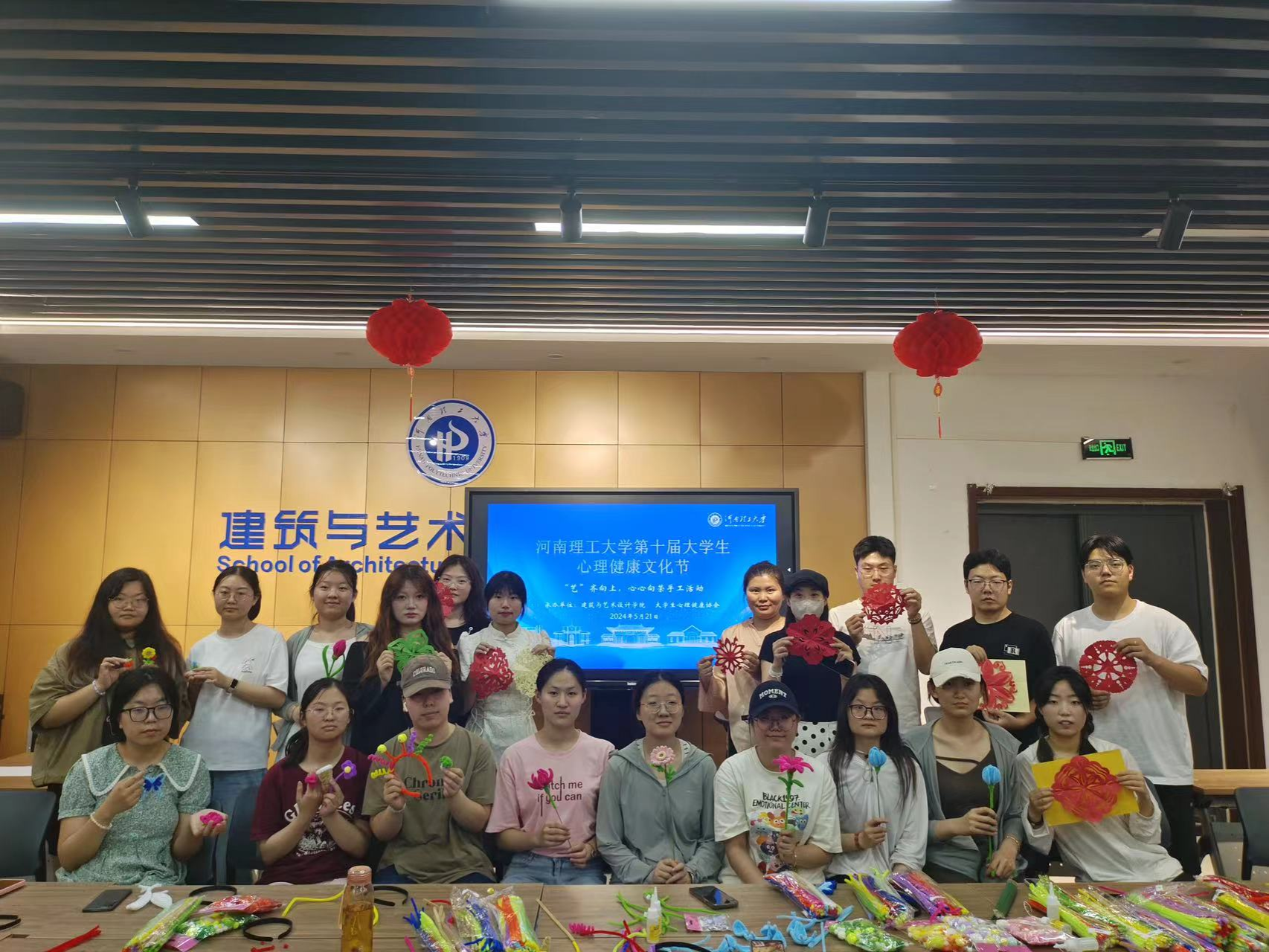 为进一步加强和改进我院学生心理健康教育工作,不断提高我院学生心理健康水平,让同学们在手工劳动中感悟生命意义、磨练心智,促进手脑结合,身心和谐发展。5 月 21 日下午,由学生工作部(处)心理健康教育与咨询中心主办、我院和大学生心理健康协会承办的“艺”齐向上,心心向荣手工活动在我院会议室举行。