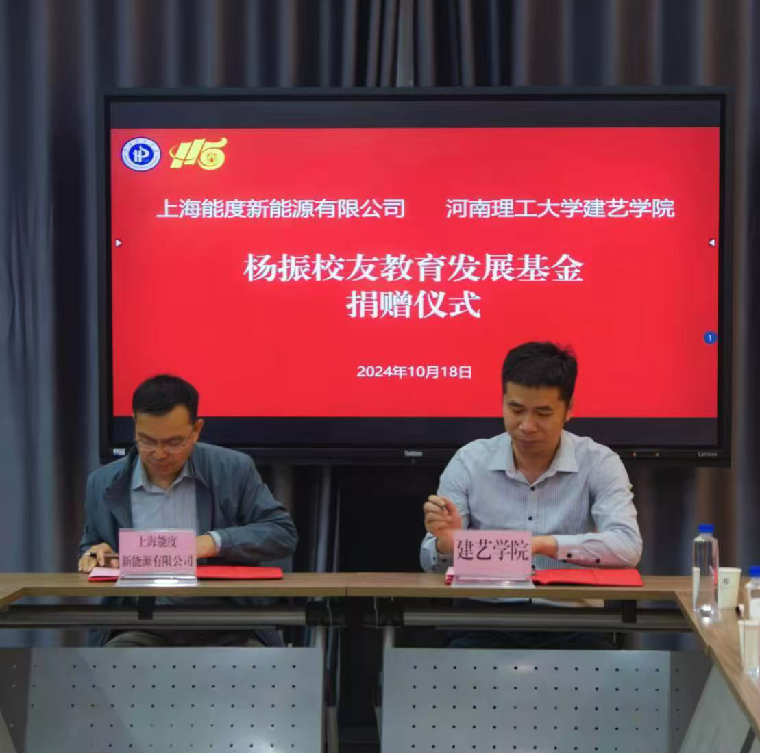 杨振和陈兵发言表示感谢母校对自己的培养和关怀,一直关注着母校的发展,并始终怀有深厚的感情,同时介绍自己的企业情况、业务范围、发展前景和未来展望,欢迎学院与企业的合作。愿意尽自己的绵薄之力回馈母校,同时诚挚邀请校友们常回母校看看,共同促进母校的建设与发展。此次捐赠是他们对母校的一份心意,也是希望能够激励更多在校学生努力学习。最后,学院与校友签订捐赠协议,边亚东为校友颁发捐赠证书并合影留念。