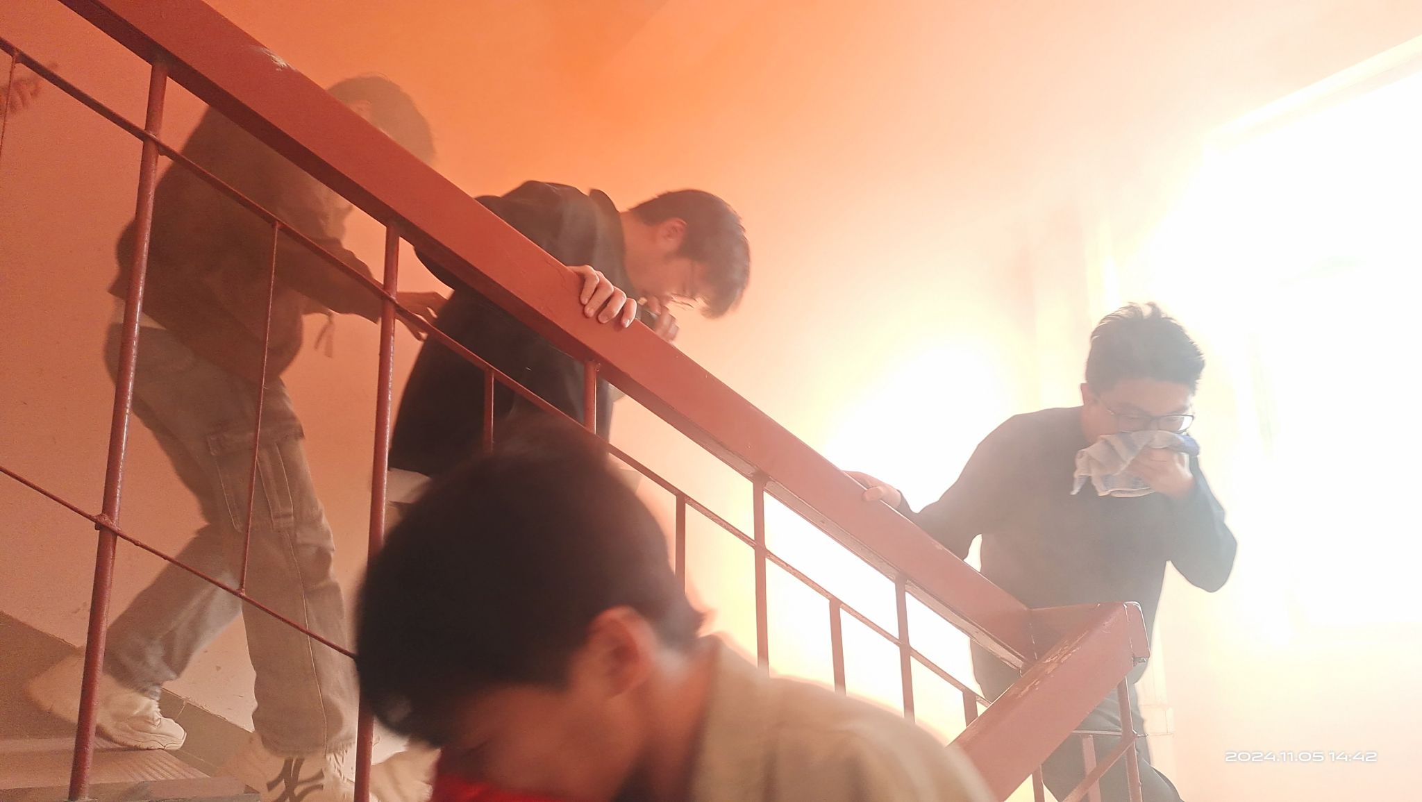 在演练现场,模拟火灾的烟雾弥漫,警示音不断响起,营造出紧张而真实的火灾现场氛围。学生在保卫处的指导下,学习了如何在火灾发生时迅速疏散。此次消防演练不仅提高了大家的消防安全意识,还增强了大家在紧急情况下的应对能力。消防安全是学校安全工作的重要组成部分,学院将继续加强消防安全教育,确保广大师生生命安全。