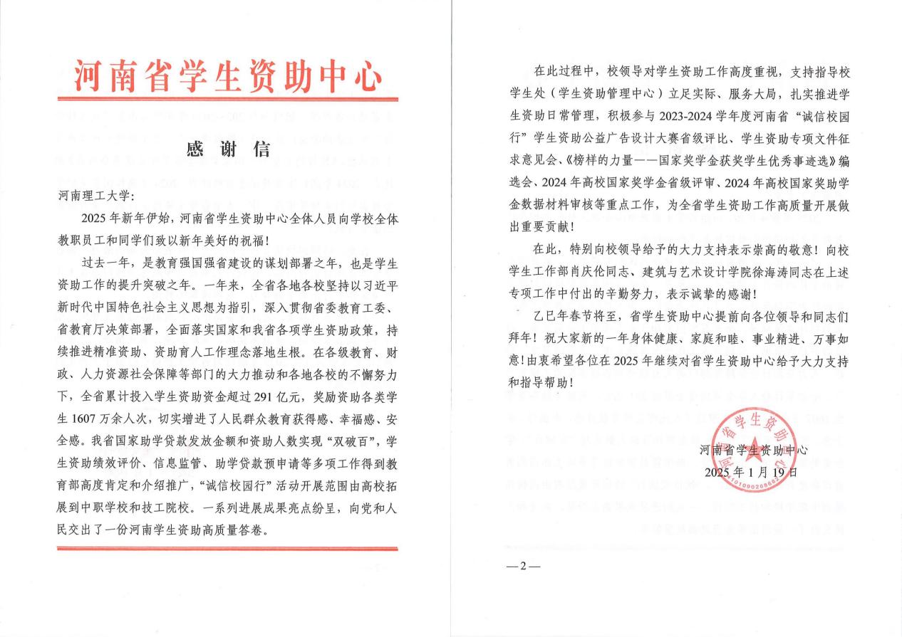 近日,我院视觉传达系党支部书记徐海涛因在学生资助工作中表现突出,受到河南省学生资助中心的表扬。