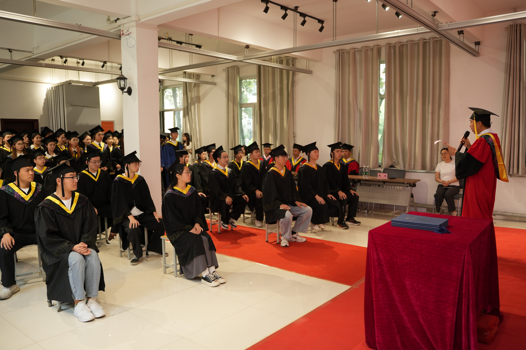 学位授予仪式中,院领导为毕业生们一一拨正流苏、颁发学位证书,并与他们合影留念。带着师长们的殷殷嘱托和深深祝福,又一批建艺学子怀揣梦想与责任,从这里扬帆起航,奔赴祖国建设的广阔天地,谱写时代新篇章。