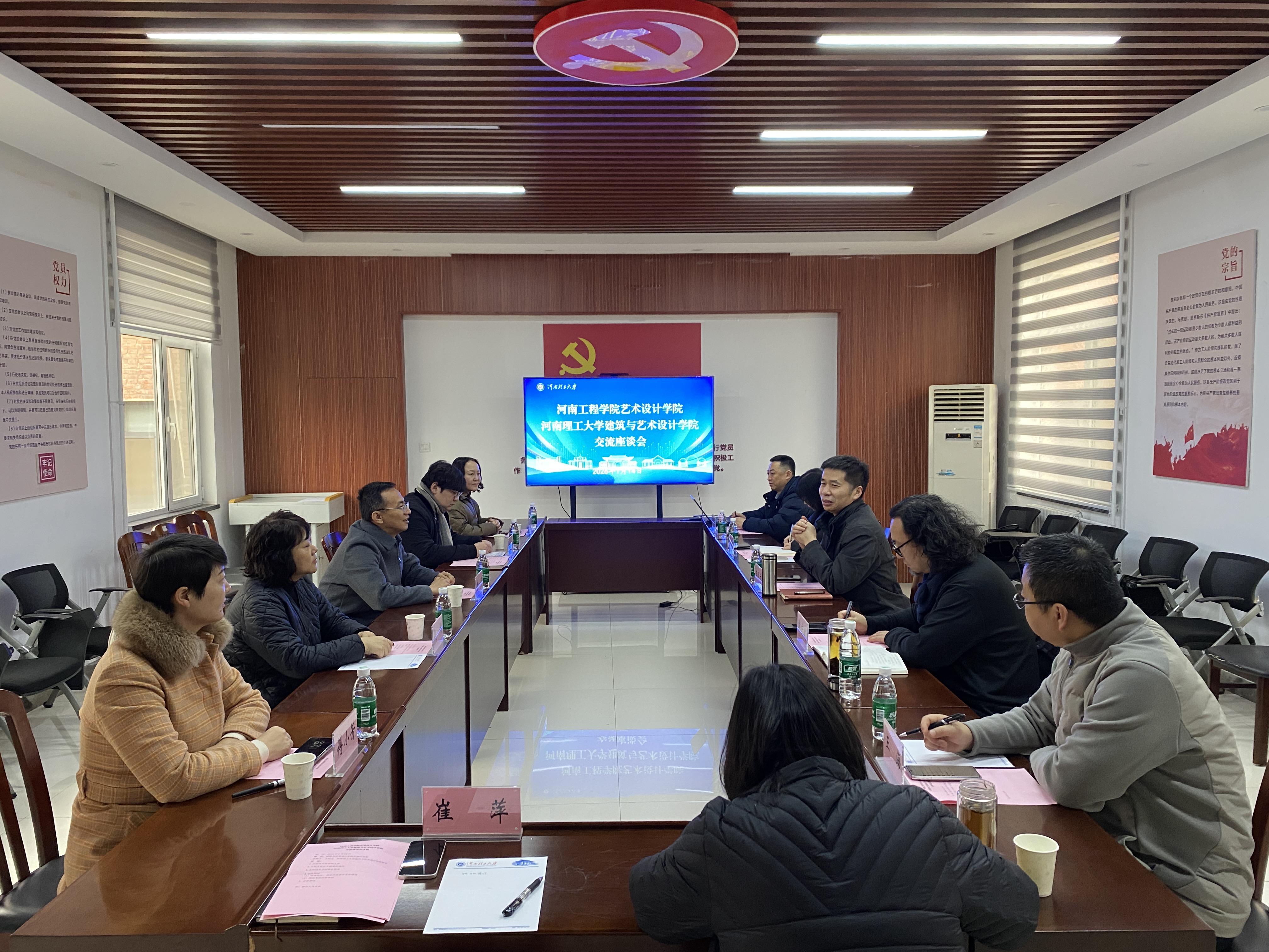 为深化校际合作,共享办学经验,2026年1月14日,河南工程学院艺术设计学院院长朱明一行五人来我院开展交流座谈。座谈会在学院党建活动室举行,由我院院长王同文主持,双方相关领导、系部负责人及骨干教师参会。